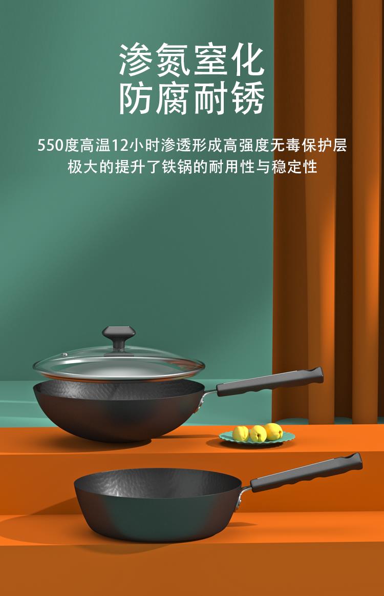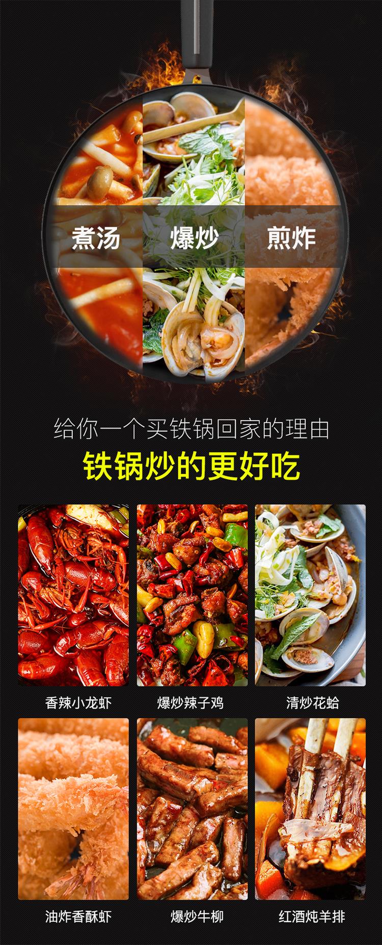 ●精铁锻打成型锅体,导热均匀迅速