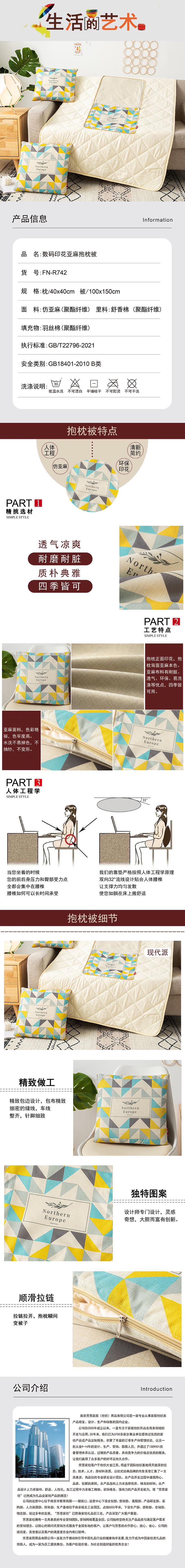 芳恩 FN-R742 数码印花亚麻抱枕被 现代派 可定制图案LOGO 抱枕 靠枕 小盖被