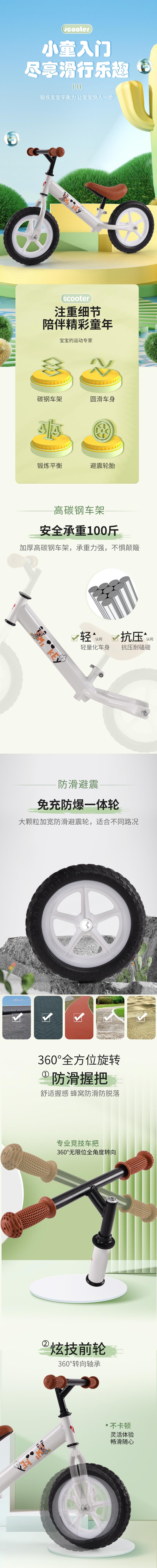 产品卖点:顺滑轴承,驱动更省力;轻便,稳固,防撞,减压,从小锻炼孩子平衡能力,协调能力,送给孩子童年最好的礼物。