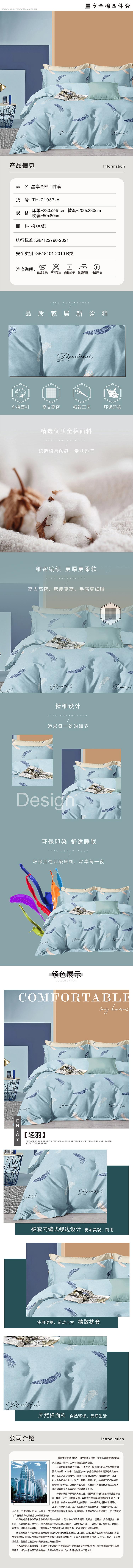 芳恩 TH-Z1037(A) 星享全棉四件套 飞羽 适合1.5/1.8米床 纯棉套件 印花套件