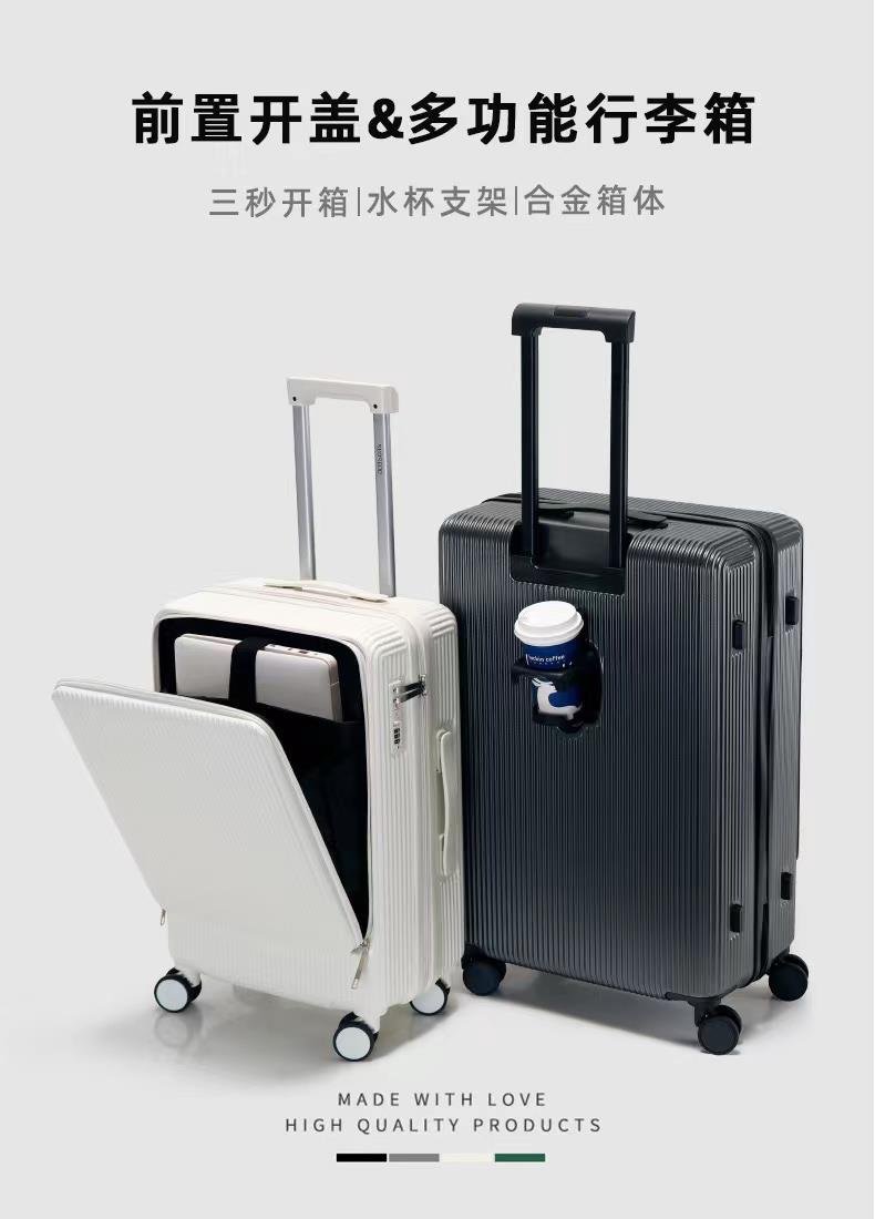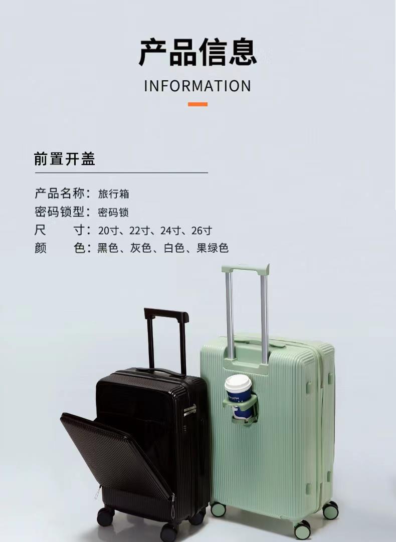 简旅JL077时尚前开盖行李箱22英寸黑色