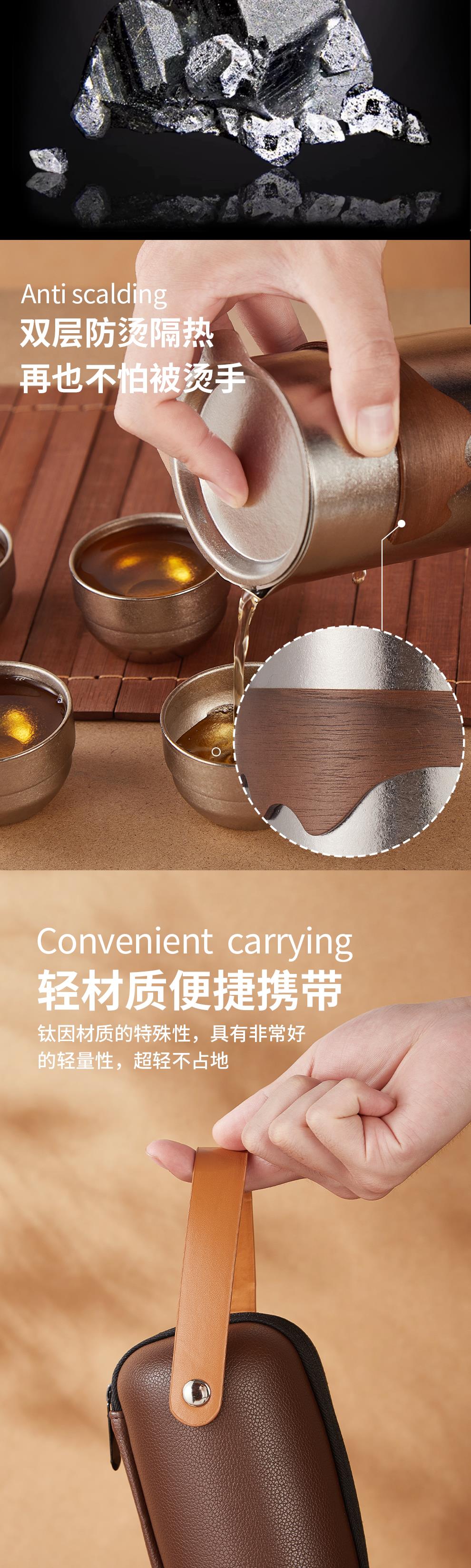 纯钛杯体,木质防烫杯套