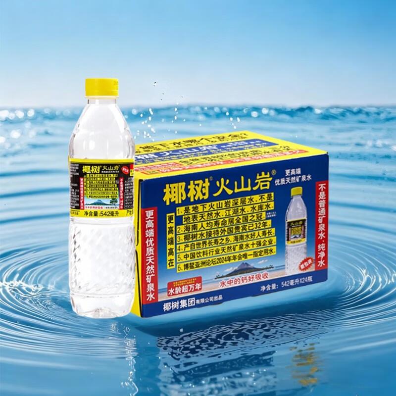 椰树火山岩 饮用水 饮用天然弱碱性含锶矿泉水 542ml*24瓶 饮用水 海南特产