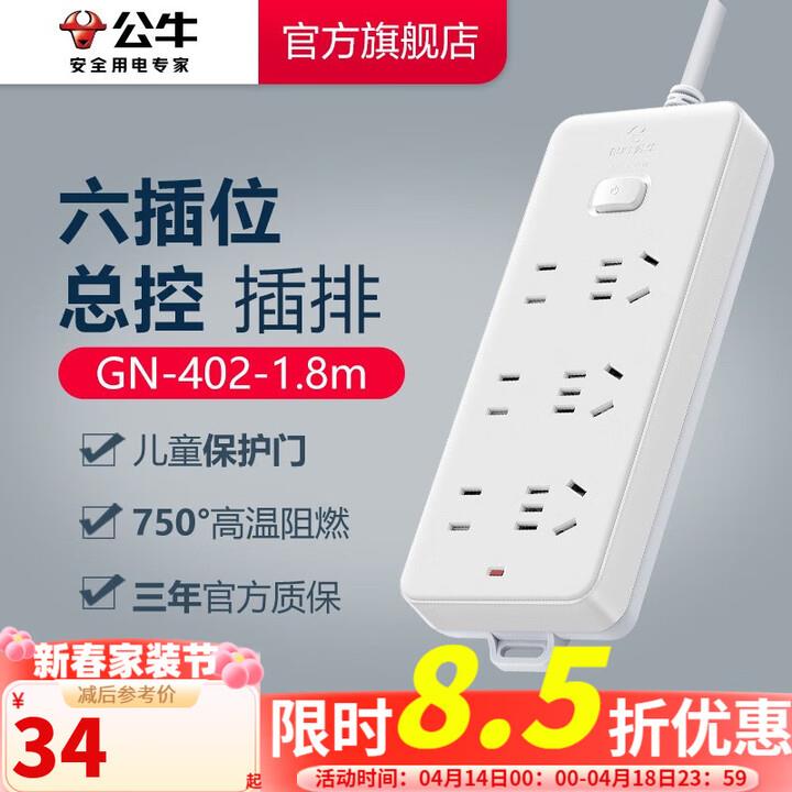 公牛1.8米延长线插座 GN-402