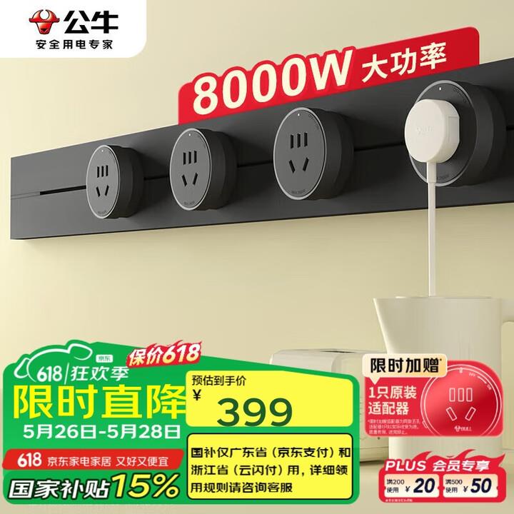 公牛BULL大师墨云灰轨道插座(左+4GS30黑色适配器8000W/7046)750GB3Z-7046墨云灰750mm