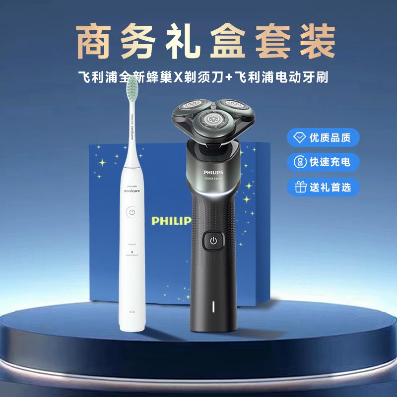 飞利浦全新蜂巢X剃须刀+飞利浦电动牙刷 商务礼盒套装GDCQ-042