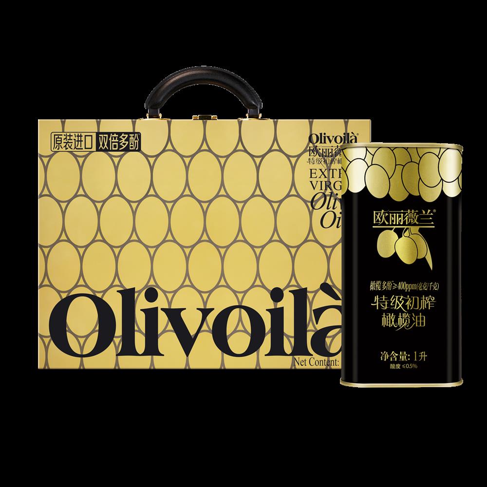 欧丽薇兰高多酚特级初榨橄榄油1Lx2 礼盒装 金橄榄橄榄油 食用油