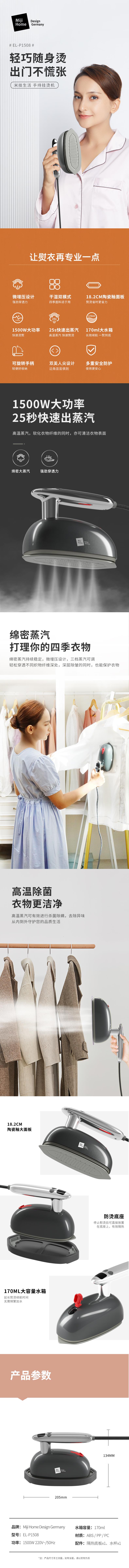 米技手持挂烫机(手持式电熨斗)EL-P1508