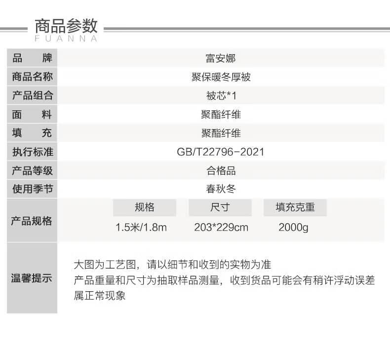 富安娜聚保暖冬厚被203*229cm