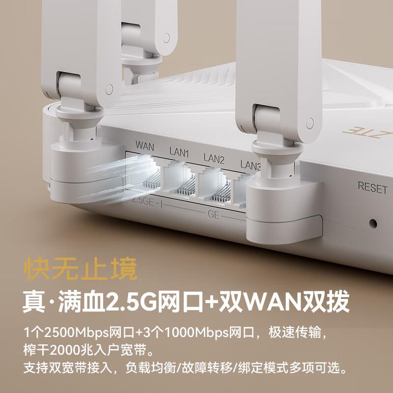 中兴(ZTE)巡天BE3600Pro 2.5G网口千兆无线家用路由器 双频聚合WiFi7
